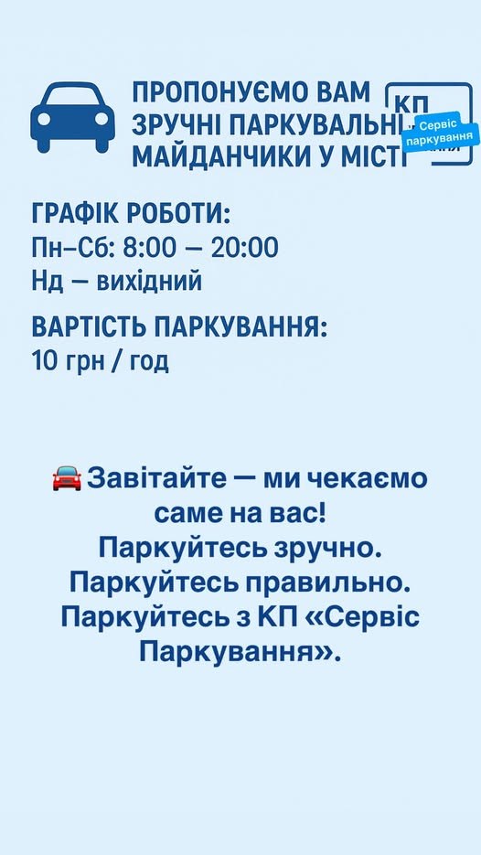 КП «Сервіс Паркування» дбає про ваш комфорт щодня.