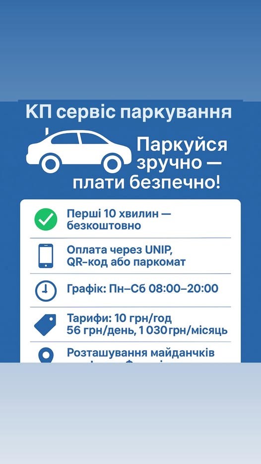 КП «Сервіс Паркування» пропонує зручні платні майданчики у ключових локаціях міста.